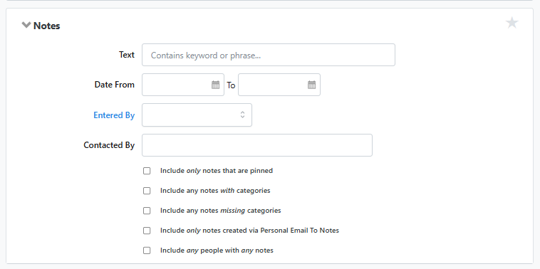 VoteBuilder does support wildcard-style matching in Notes searches, but only in a very specific and practical sense. The system treats a Notes search as a “contains” or partial-text match rather than a true wildcard syntax like you would see in SQL or Excel. In other words, you do not type an asterisk or question mark. Instead, you enter a fragment of text, and VoteBuilder will return all notes that contain that fragment anywhere in the note.