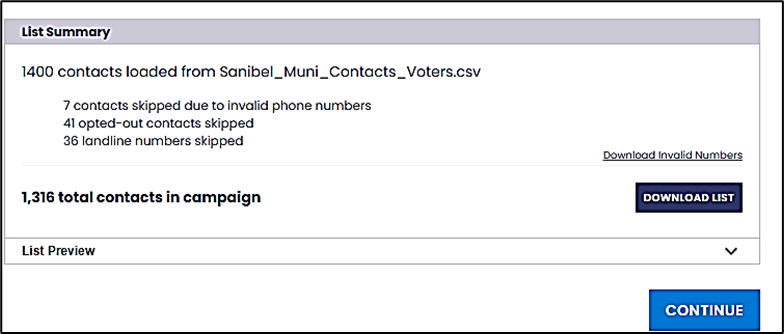 - At this point STW removes contacts with land lines, those who have opted out or have bad numbers. The List Summary tells you how many contacts were removed and remain. You may download and save that list.